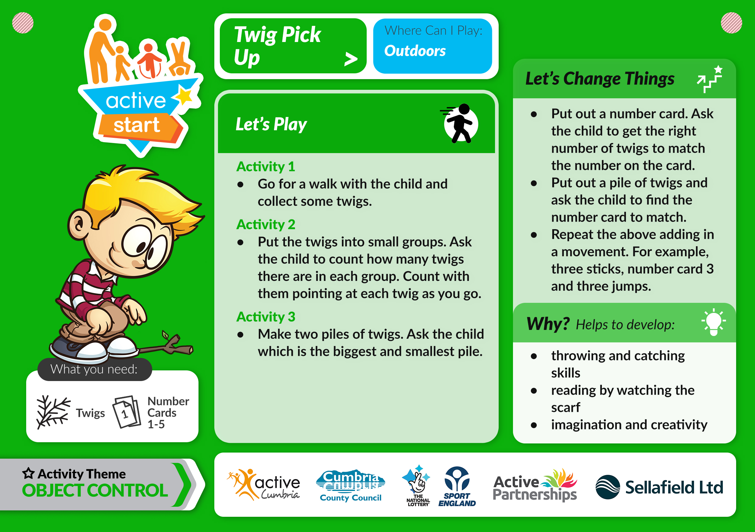 Activities to try: Taking a Walk, Wacky Walking, Twig Pick Up